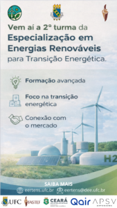 Data da publicação: 2 de janeiro de 2026 Categoria: Notícias, Sem categoriaA Universidade Federal do Ceará (UFC), por meio do Departamento de Engenharia Elétrica, prepara a segunda turma da Especialização em Energias Renováveis para Transição Energética, com início previsto para março de 2026.